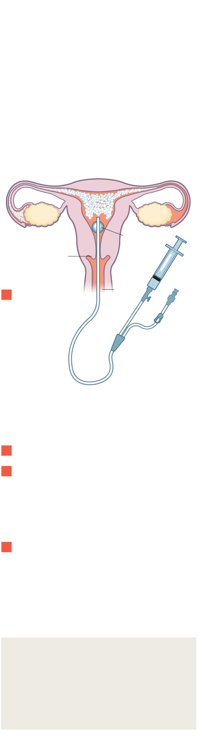 into the uterine cavity through a small catheter with a small balloon near the tip that is inflated to stop the fluid from running back through the cervix.